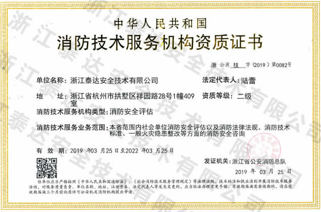 社會單位消防安全評估;消防法律法規、消防技術標準、一般火災隱患整改等方面的消防安全咨詢。